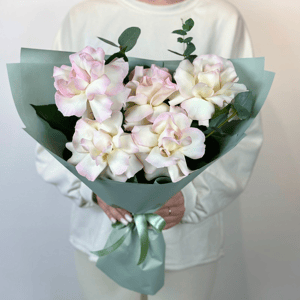 Коробка с цветами «Роскошные линии» из роз и эустом