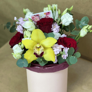 Шляпная коробка с цветами «Альстромерия в коробочке»