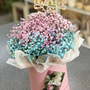 Коробка с цветами «Сумочка с сухоцветами» из гипсофил