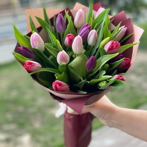 Букет «Нежная любовь» из тюльпанов и альстромерий