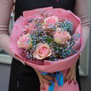 Букет «Просто так» из роз и гипсофил