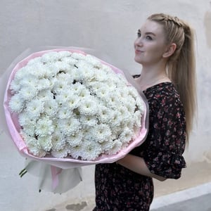 Букет «Гортензии белые с кустовыми ромашками в миксе»
