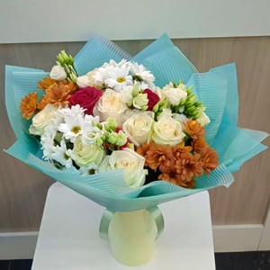 Шляпная коробка с цветами «Хлопковое облако» из роз