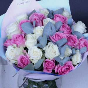 85 роз микс бело-розовые букет