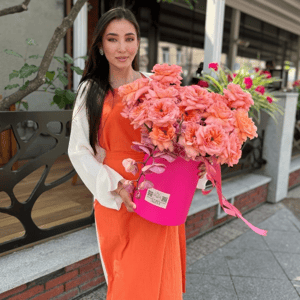 Шляпная коробка с цветами «Маме» из роз и гвоздик
