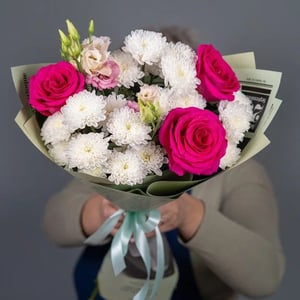 Авторский букет (014) из роз и хризантем