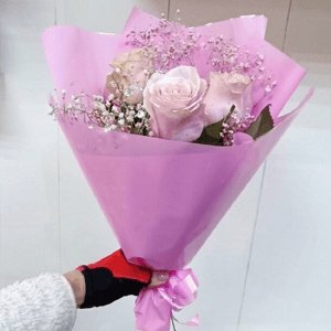 Букет из роз с гипсофилой