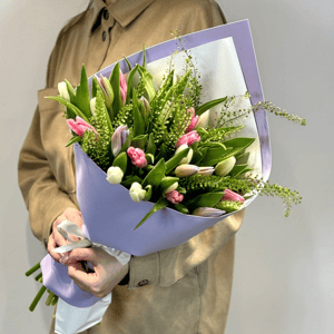 Букет «Любящий взгляд» из тюльпанов и ирисов