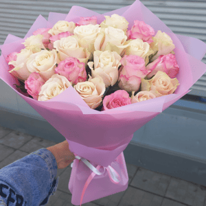 Букет «151 роза Красная и Белая (60 см) под ленту»