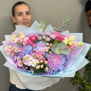 Букет «Хризантемы, диантусы и альстрамерия маме»