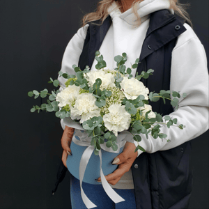 Шляпная коробка с цветами «Композиция "Белоснежная вуаль"»