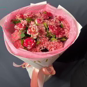 Шляпная коробка с цветами «Малиновый щербет» из роз