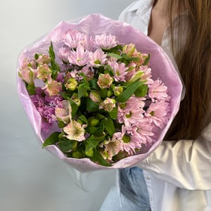 Цена букета зависит от сорта цветов, количества бутонов и размера композиции. Если нужен подарок недорого, выбирайте классические монобукеты с розами и хризантемами — можно найти варианты от 1500 руб.