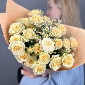 Шляпная коробка с цветами «3 французские розы в коробочке»