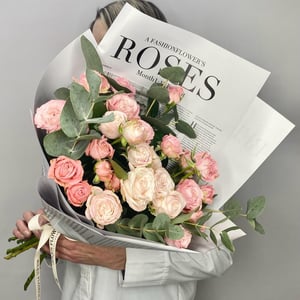 Букет «Персиковый поцелуй» из роз и гвоздик