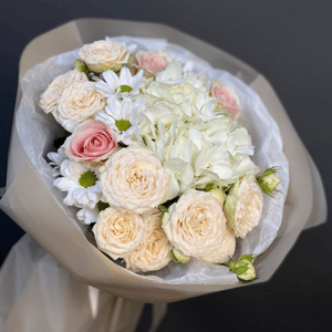 Букеты из гортензий и кустовых роз в Новосибирске