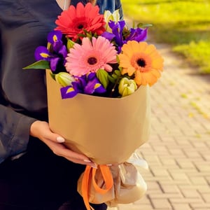 Букет из ирисов, гербер, лилий небольшой