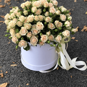 Шляпная коробка с цветами «Кустовые Розы в коробке»