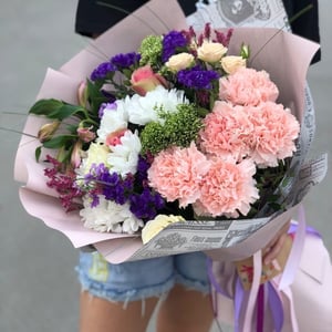 Букет «Зефирка» из роз и гвоздик