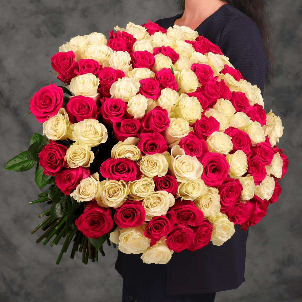 Букет «101 белая и розовая роза Эквадора 60 см»
