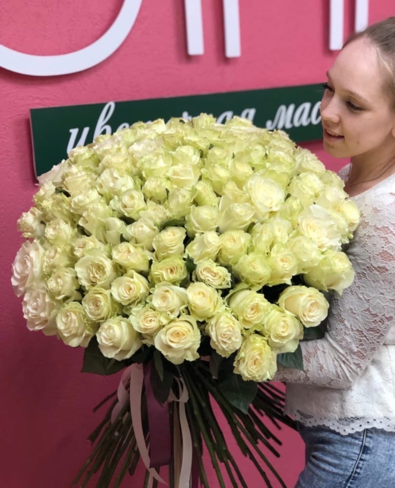 Огромный букет из 101 розы Эквадор. Розы отличаются крупным бутоном и стойкостью.