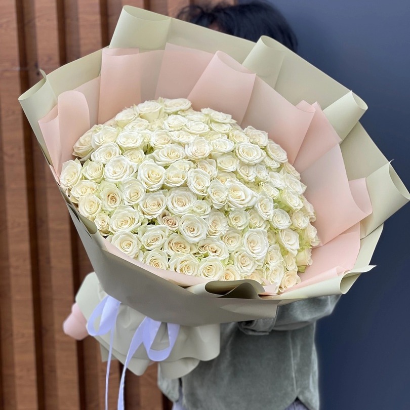 Букет «101 белая роза пышная упаковка»