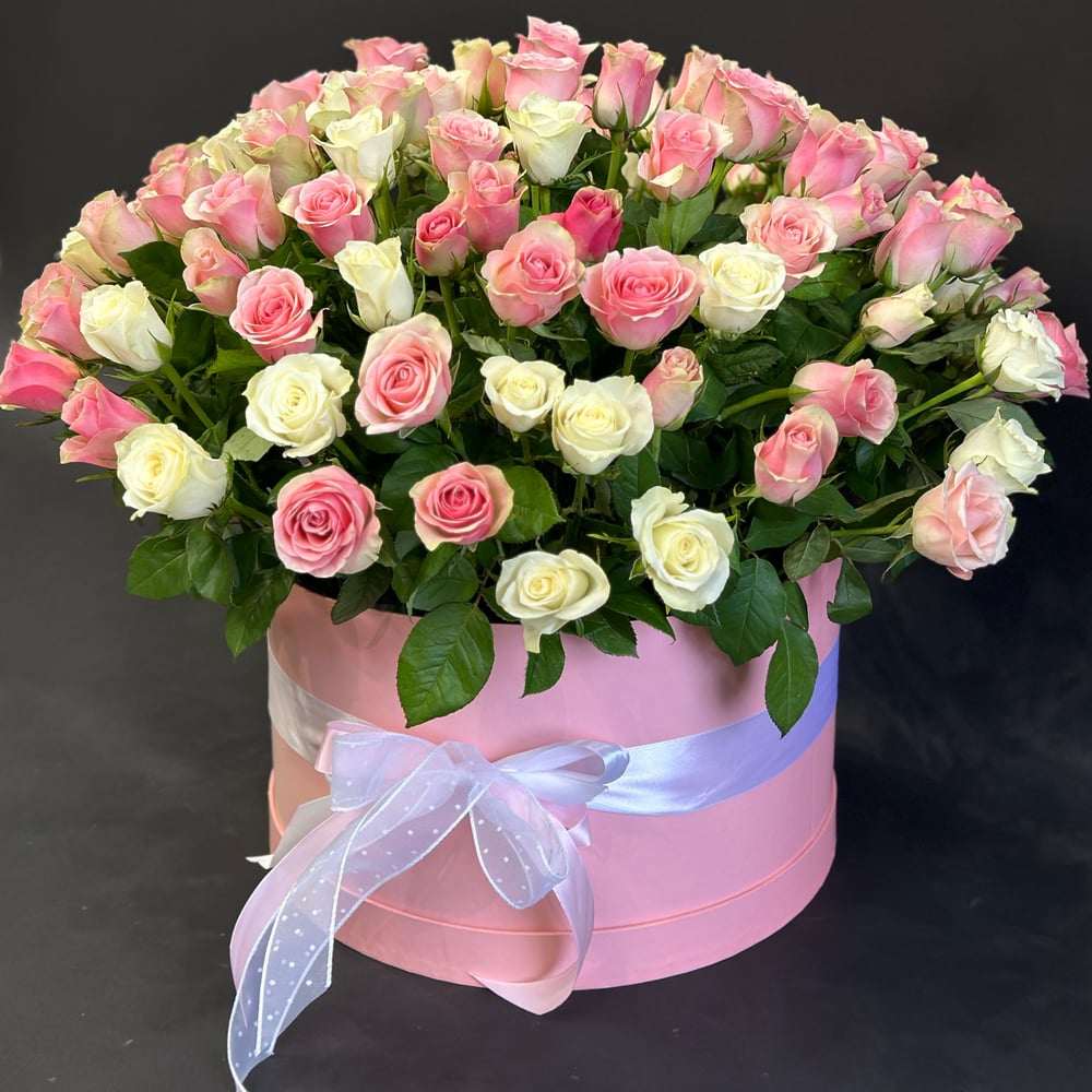 101 нежная Роза в шляпной коробке