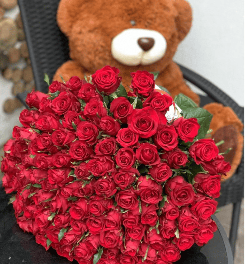 Букет «101 красная роза под ленту»