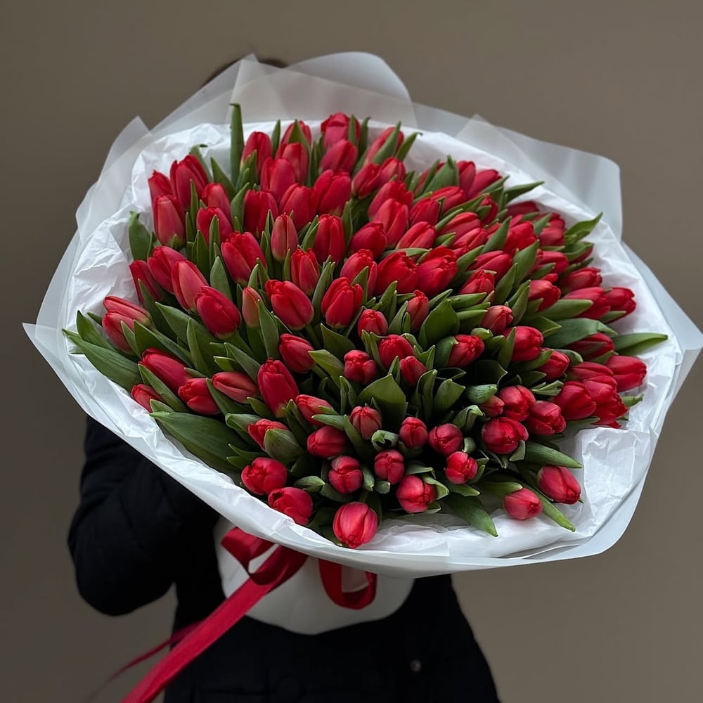 Букет «101 красный тюльпан - любовь»