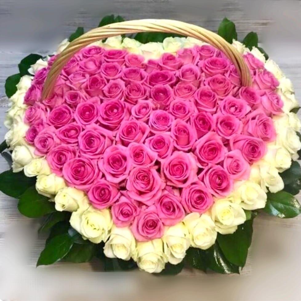 Эффектный способ признания любви — букет, собранный из 101 розы в форме сердца.