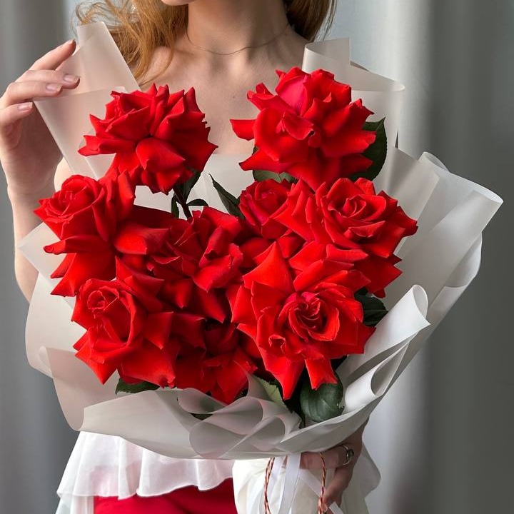 11 роскошных красных французских роз создают безупречную композицию в стильной лаконичной упаковке. Каждый бутон напоминает изысканный пион, а благородная простота оформления подчеркивает природную красоту цветов.