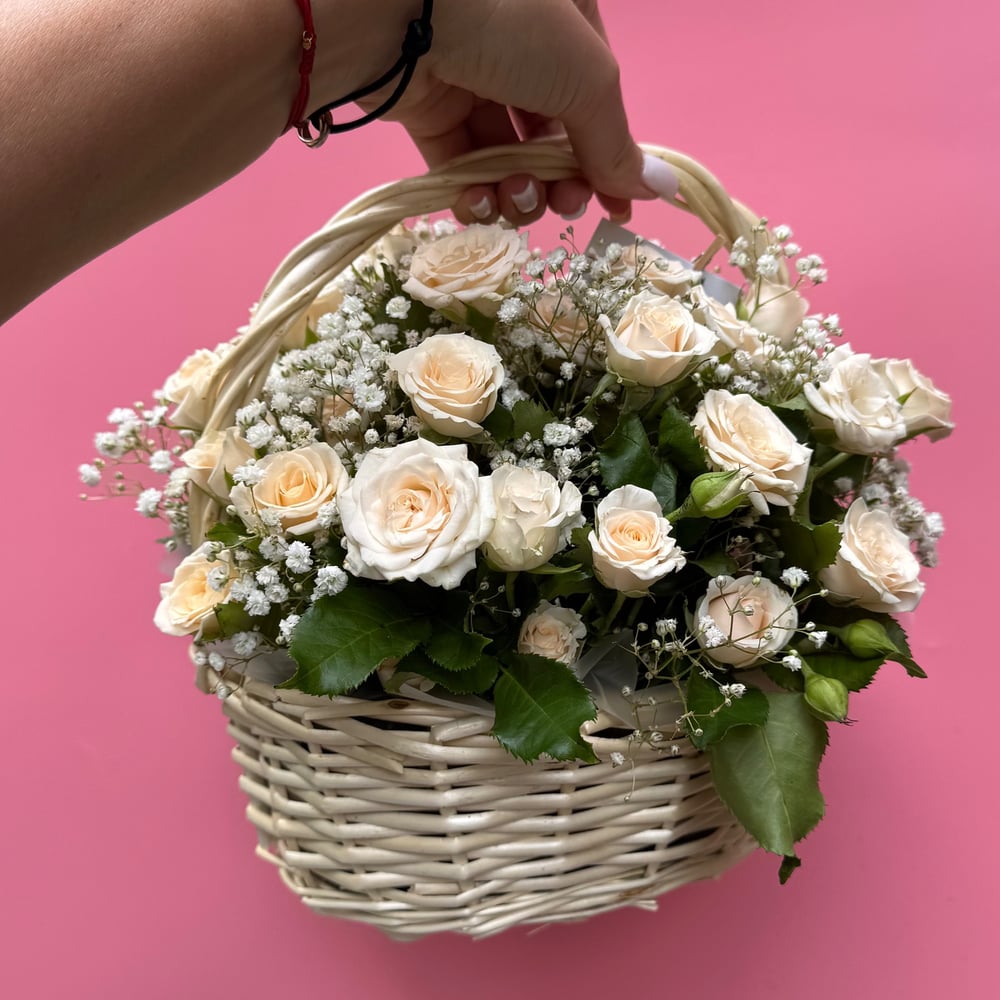 11 кустовых роз в корзине