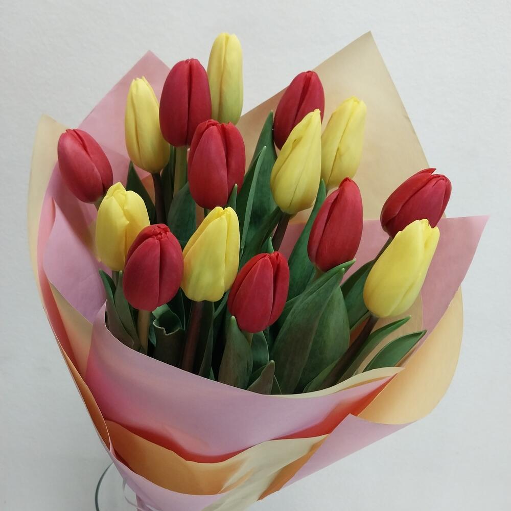 Букет «15 красных и жёлтых тюльпанов»