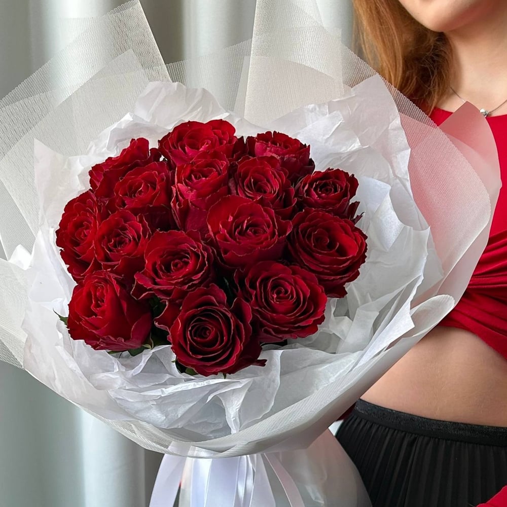 Стильный букет из 15 красных роз