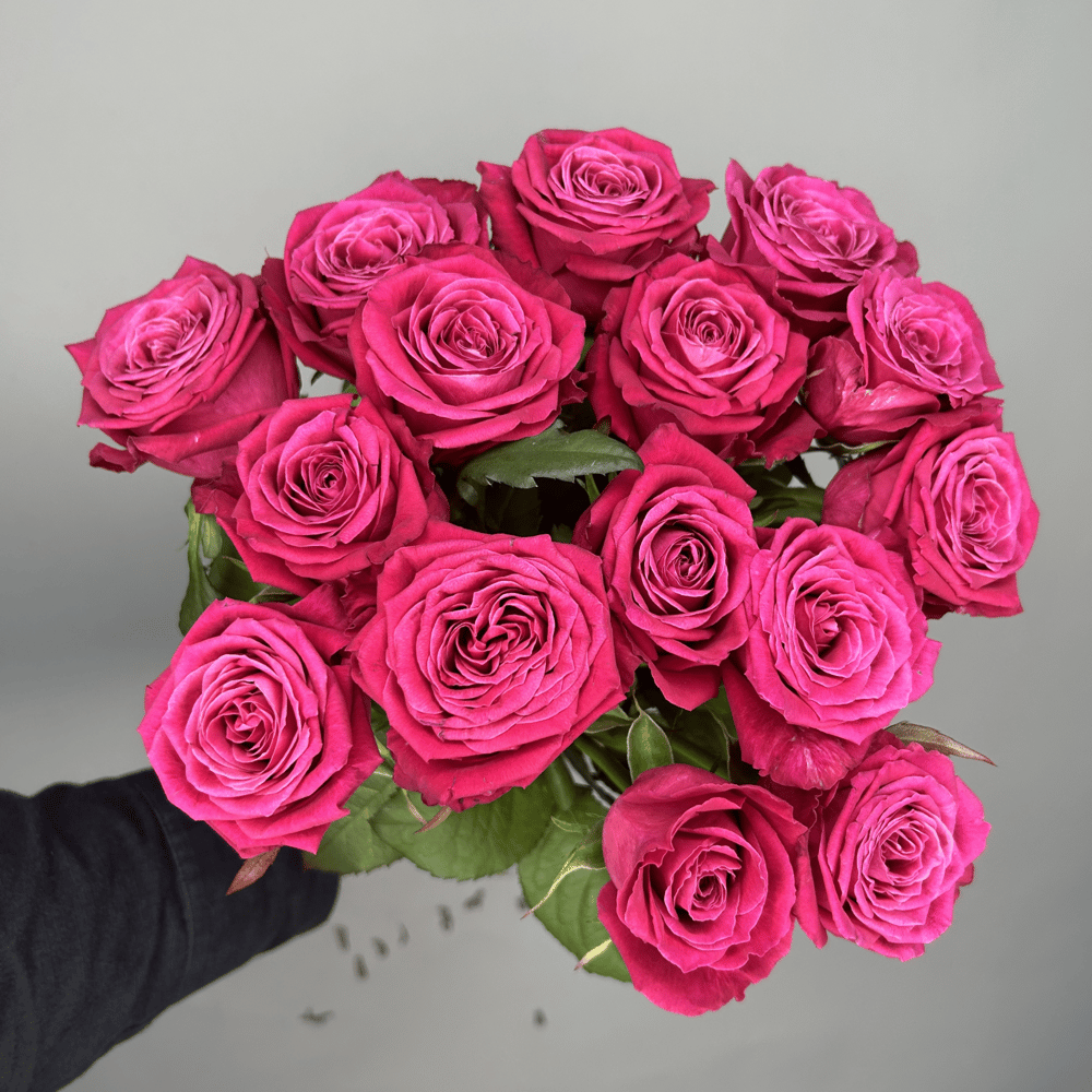 Прекрасный букет из 15 роз малиновых