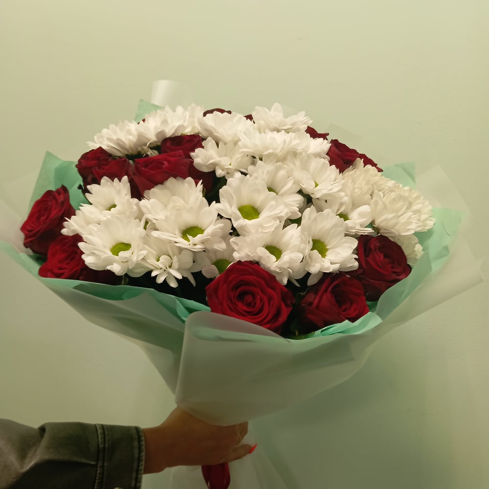 Букет «15 роз с хризантомой»