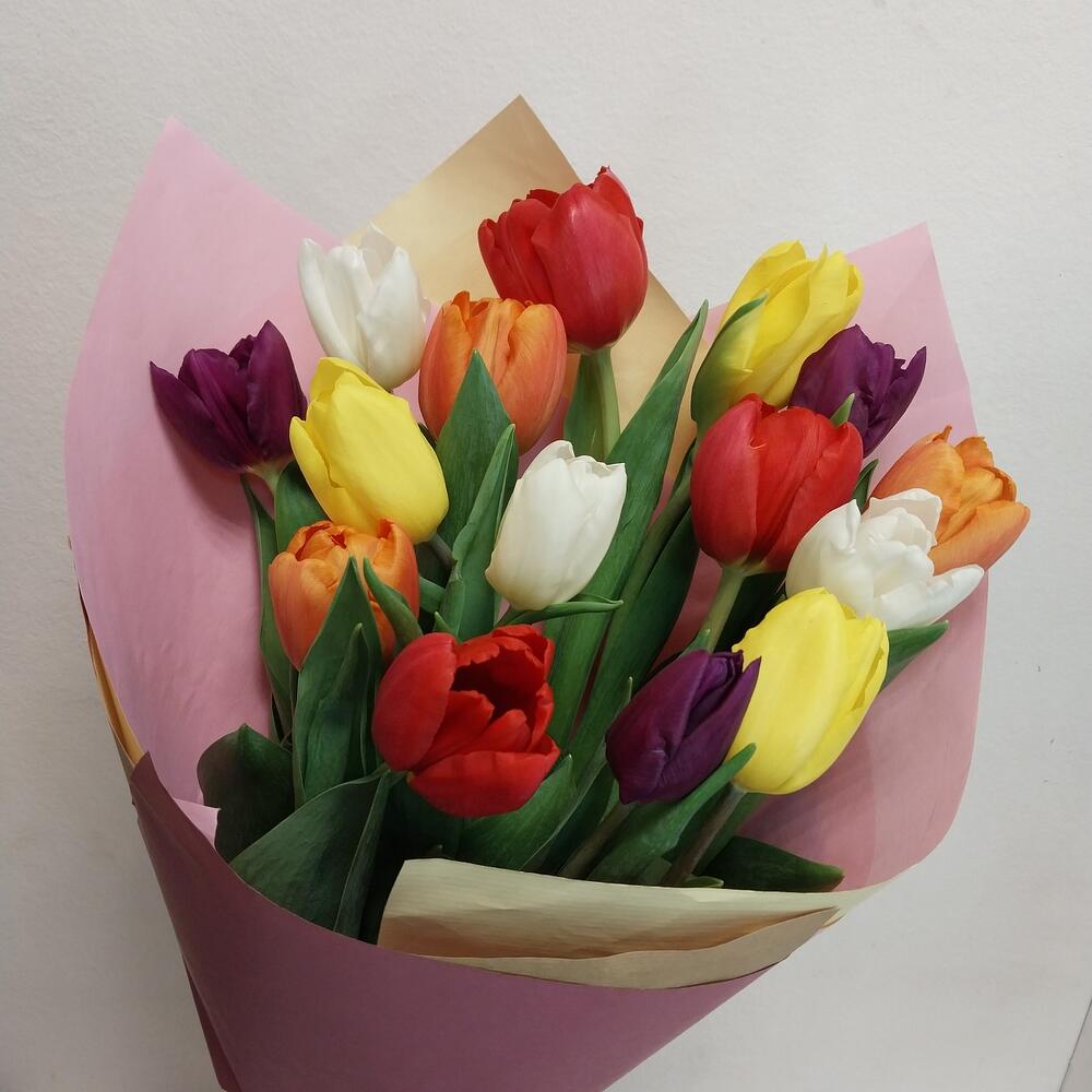 Букет «15 цветных тюльпанов»