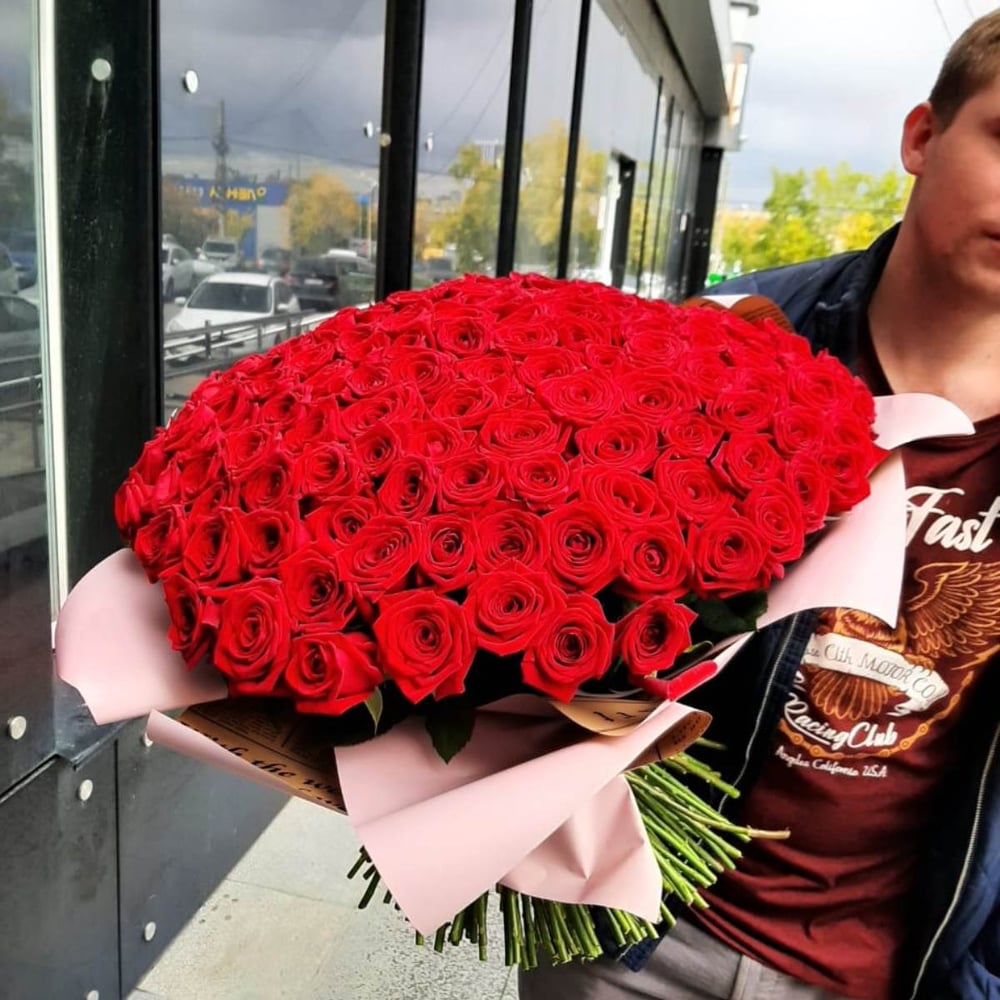 Огромный букет таких цветов по достоинству оценит каждая женщина. Не упустите возможность подарить шикарную цветочную композицию из 151 бархатной розы.