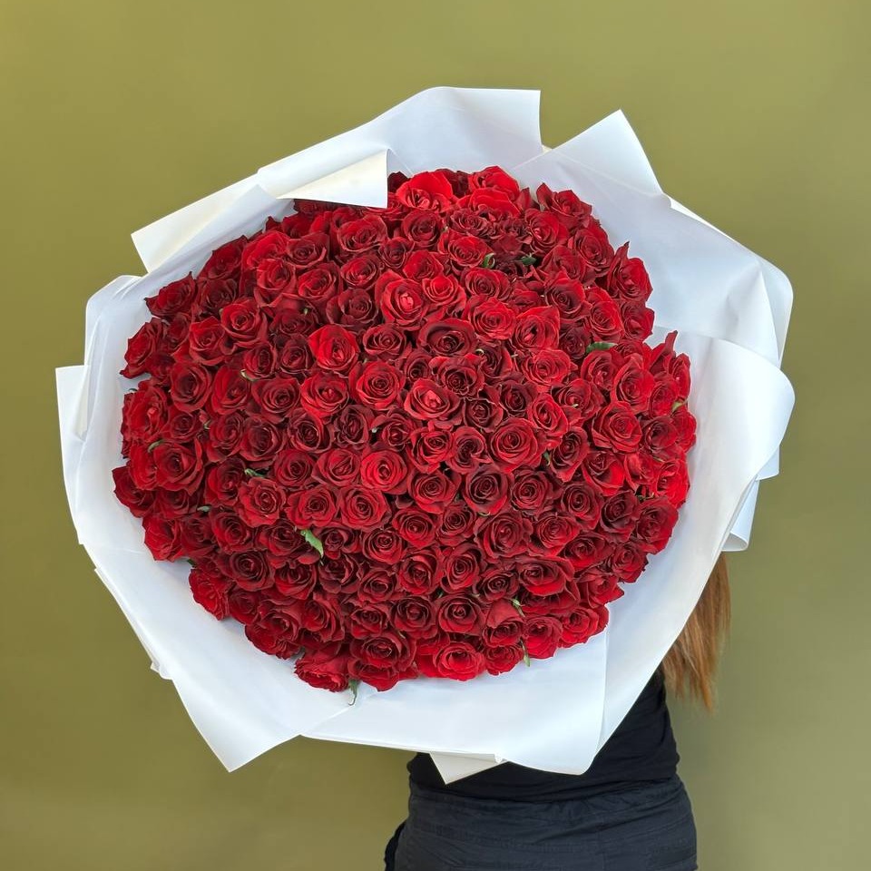 Букет из 151 красной розы высотой 60 см от BuketiO — это роскошный и впечатляющий подарок, который станет ярким акцентом любого торжества. 151 алая роза, собранные в пышный букет, символизируют стр...