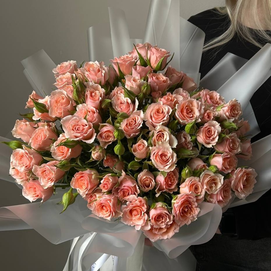 Пышный букет из 17 кустовых роз – это воплощение романтики и изысканности. Кустовые розы, известные своей неприхотливостью и долговечностью, будут радовать получателя своей красотой долгое время