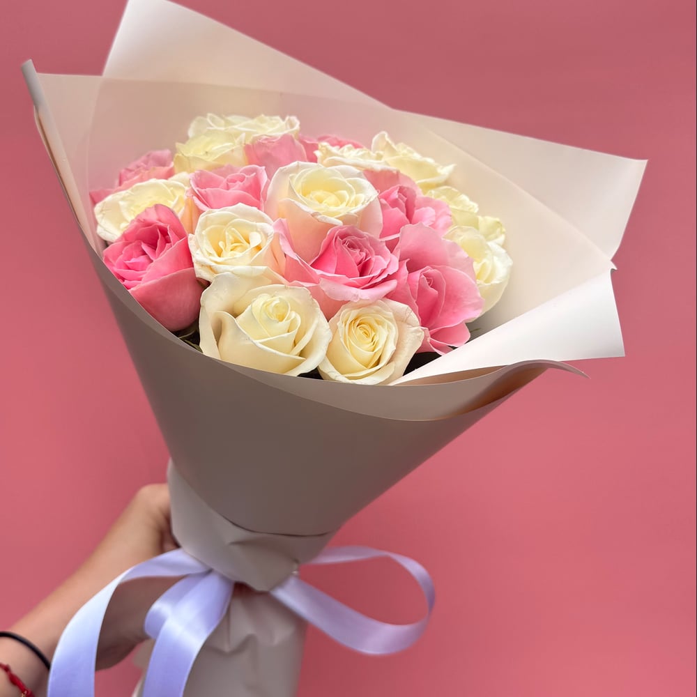 Букет «19 белых и розовых роз»