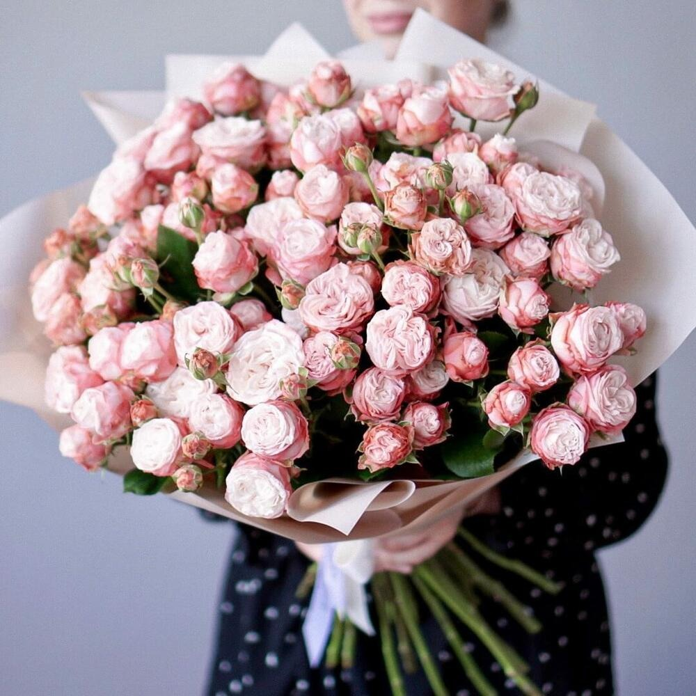 Кустовая пионовидная роза — это великолепие и богатство, заключенное в изящных благоухающих бутонах, похожих на роскошные пионы. Эмоции в Вашем букете доставит наш пунктуальный и вежливый курьер.