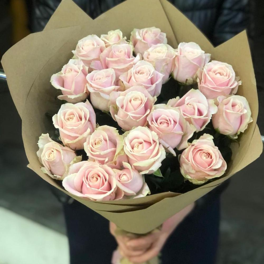 Прекрасный недорогой букет из 19 Кремовых Роз с Розоватым оттенком Эквадор 50 см Воздушный букет Идеально подойдёт Для первого свидания !