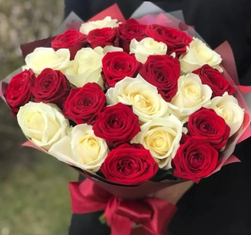 Букет «24 красные и белые розы»