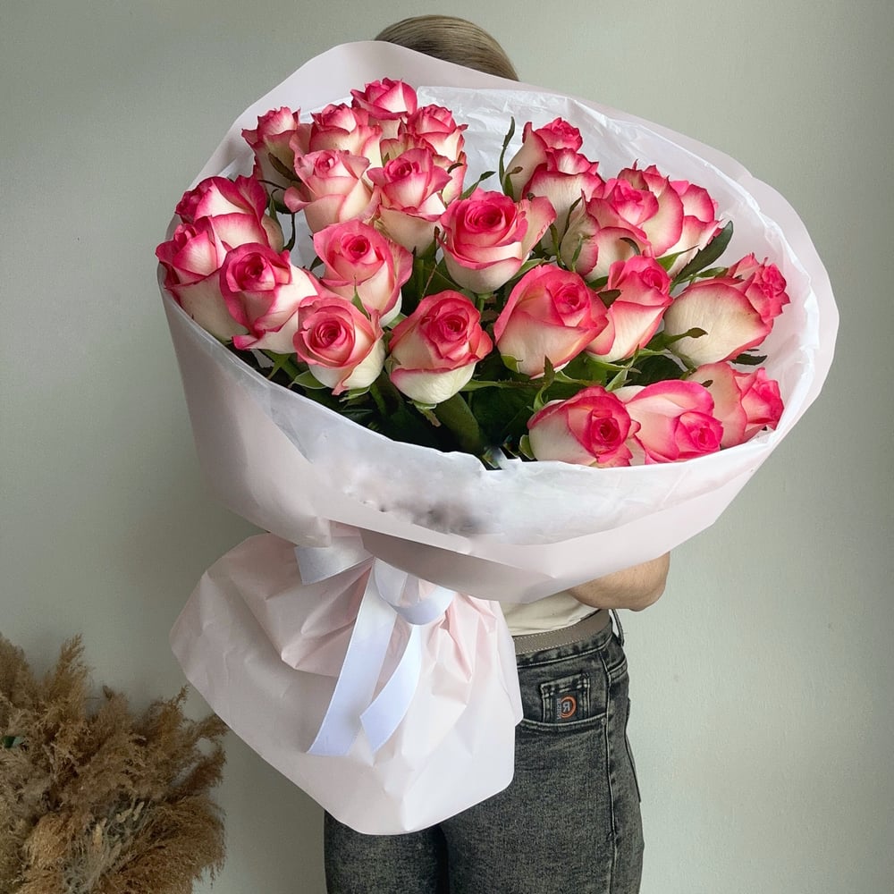 Букет «25 бело-розовых роз Джумилия»