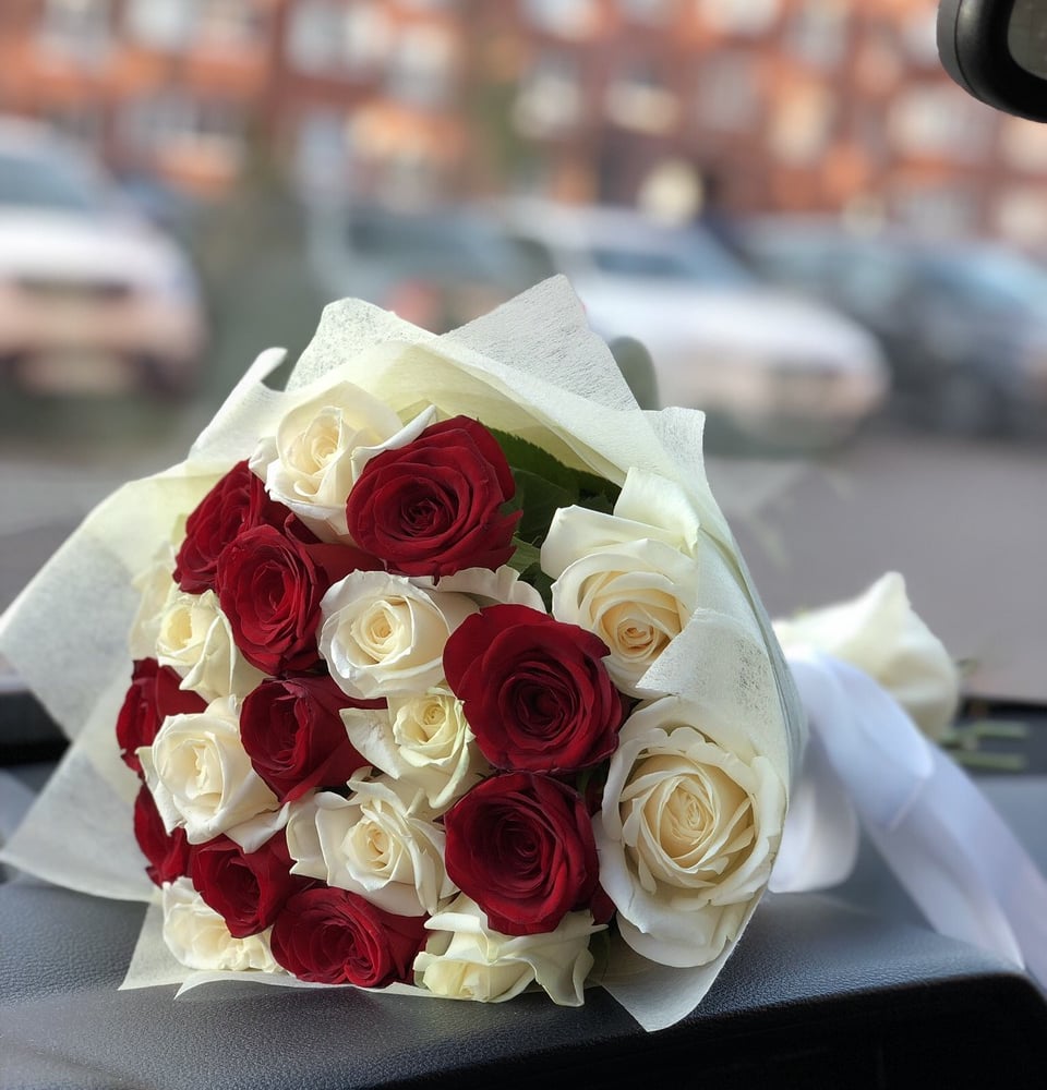 Букет «25 белых и красных роз»