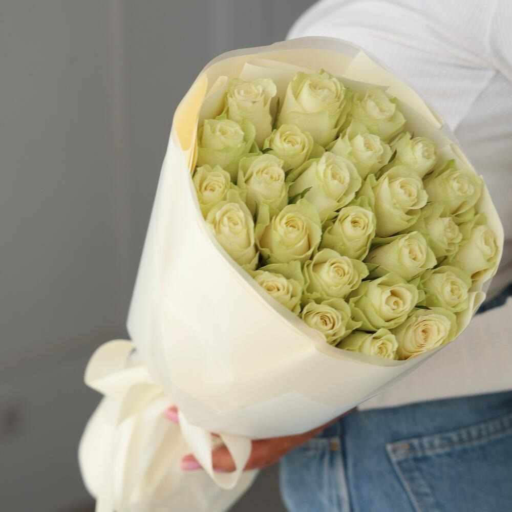 Нежный букет из белых кенийских роз в стильной упаковке. В дополнении к нашим букетам идет Сладкий подарок от магазина