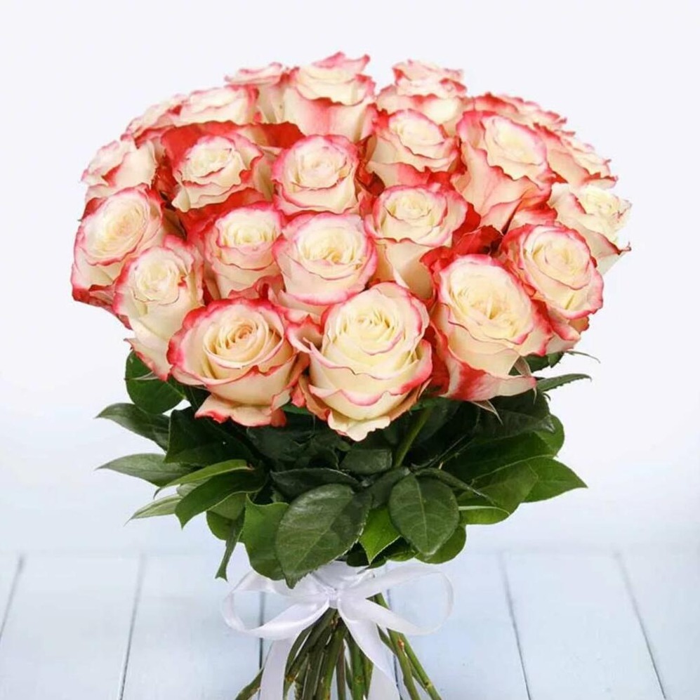 Нежный и элегантный букет из 25 двухцветных роз Эквадор порадует своей красотой и изысканностью. Этот букет станет прекрасным подарком для любого торжественного события или просто для того, чтобы порадовать близкого человека. Эмоции в Вашем букете доставит наш пунктуальный и вежливый курьер.