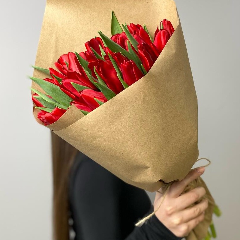 25 красных фермерских тюльпанов ПРЕМИУМ
