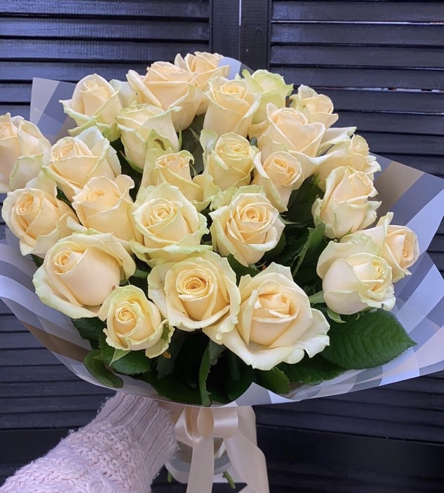 Букет «25 кремовых роз 50 см в оформлении»